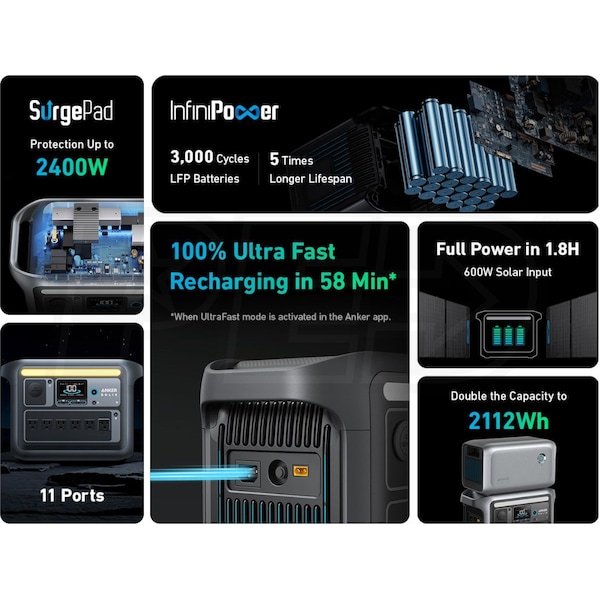 - Expands capacity to 2112Wh when using extra battery