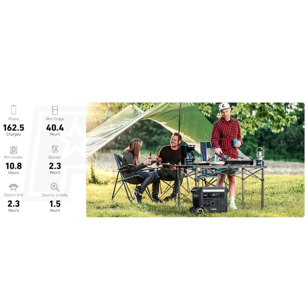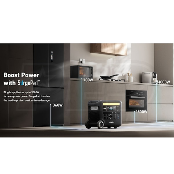 - Provides up to 3600 watts to power 99% of small appliances