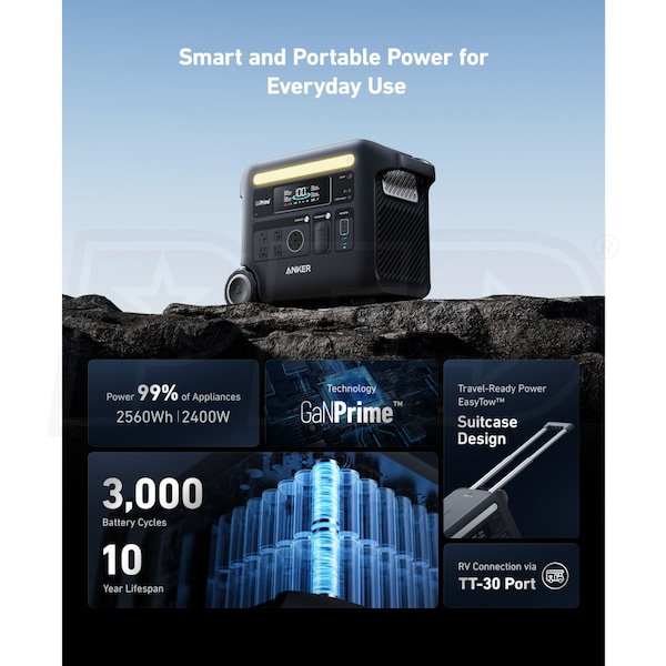 - Anker SOLIX F2600 - 2560Wh Portable Power Station & 400 Watt Solar Panel Bundle
