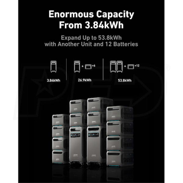 - Expands capacity up 26,800Wh when using up to (6) extra battery