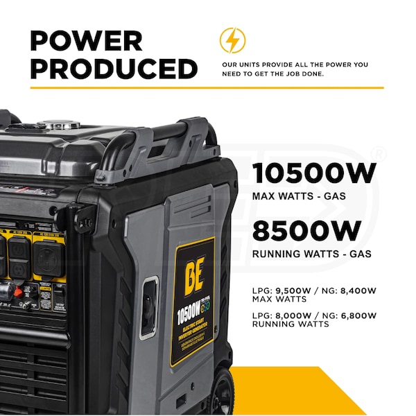 BE Power Equipment BE10500IT - 8500 Watt Electric Start Tri-Fuel Portable Inverter Generator w/ CO Detector (49-State)