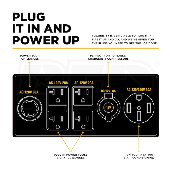 - 120/240V 50-Amp (L14-50R) & 30-Amp (14-30R) Outlets