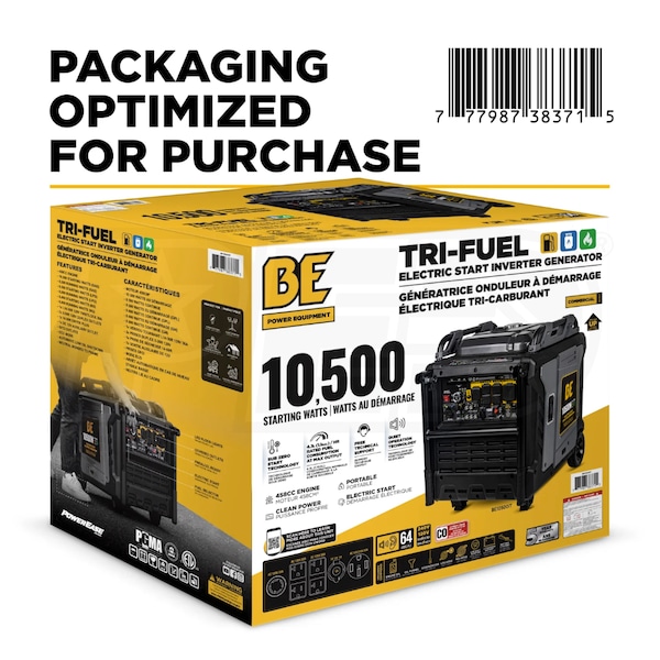 - BE Power Equipment - BE10500IT - Tri-Fuel Portable Inverter Generator