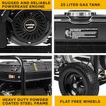 - Provides up to 9,000 (Running) / 12,500 (Starting) watts on gasoline