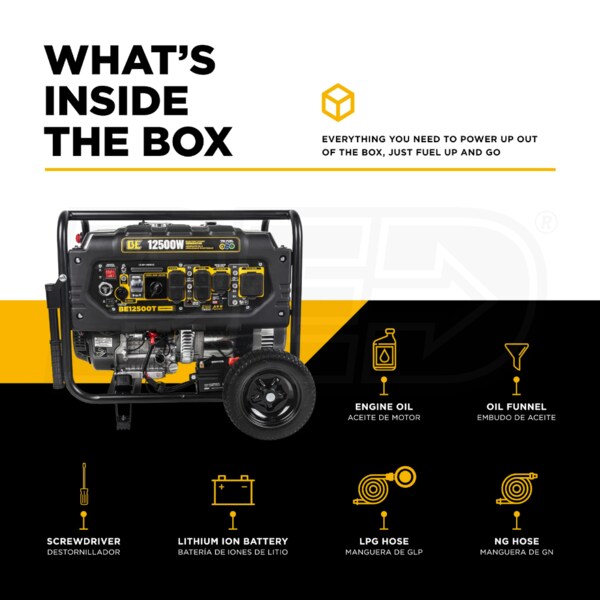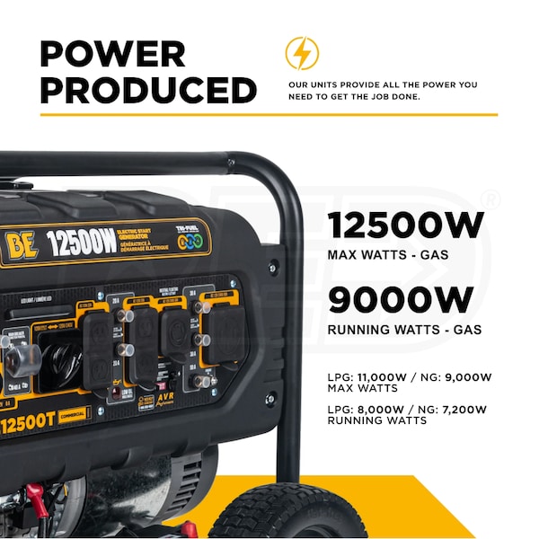 - BE Power Equipment - BE12500T Portable Electric Start Tri-Fuel Generator