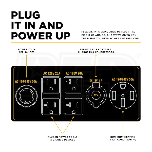 - Provides up to 8,000 (Running) / 11,000 (Starting) watts on propane