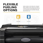 - Runs for up to 7.2 hours @ 50% Load (Gas)