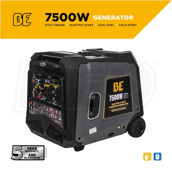 - BE Power Equipment - BE7500ID - Dual-Fuel Portable Inverter Generator