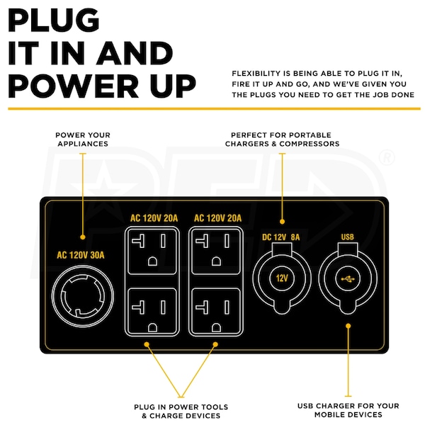 - (2) 5-20R (120V) Outlets w/ Circuit Breaker Protection