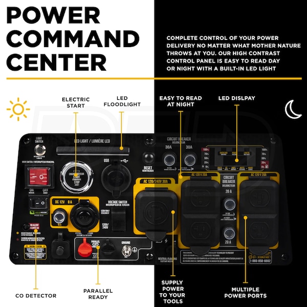 - 6,000 running watts & up to 7,500 starting watts on gasoline