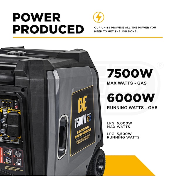 BE Power Equipment BE7500ID - 6000 Watt Electric Start Dual Fuel Portable Inverter Generator w/ CO Dector (49-State)