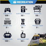 - Can be charged using wall outlet or solar panes (Sold Separately)