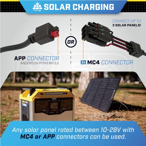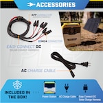 - AC Charge cord and DC solar charge harness