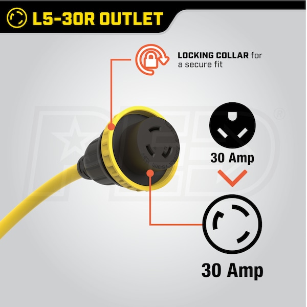 Champion 30-Foot 30-Amp RV (TT-30P to L5-30R) Generator Power Cord