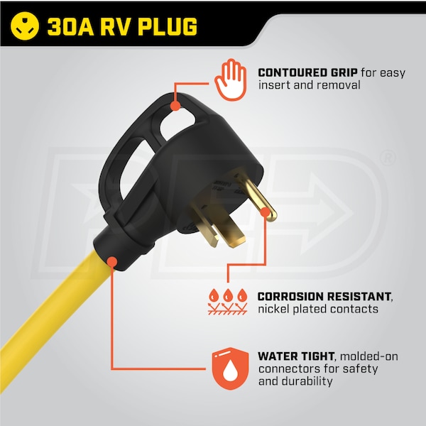 - RV 30-Amp (TT-30P) Plug to 30-Amp (L5-30R) Receptacle