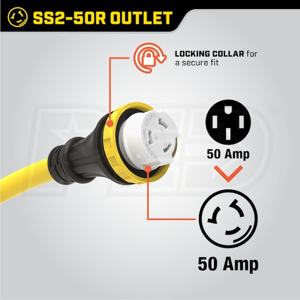 - 50-Amp (14-50P) Plug to 50-Amp (SS2-50R) Receptacle