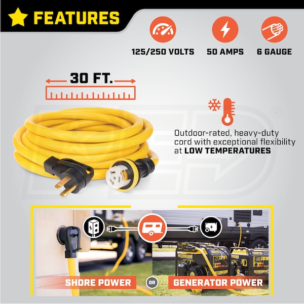 Champion 30-Foot 50-Amp RV (14-50P to SS2-50R) Generator Power Cord