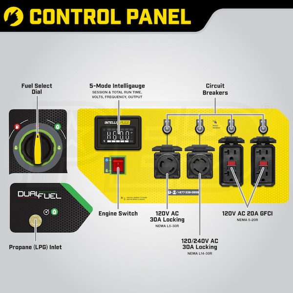 - *Note - Propane Fuel Provides 6750 Running Watts / 8400 Starting Watts
