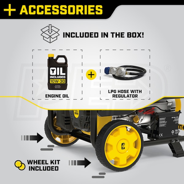 - 6.5' LPG Hose w/ Regulator, Start-Up Engine Oil & Oil Funnel