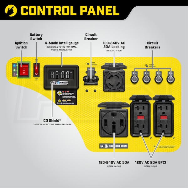 - 120/240V 50-Amp (39.5A Max) (L14-50R) & 30-Amp (14-30R) Outlets***