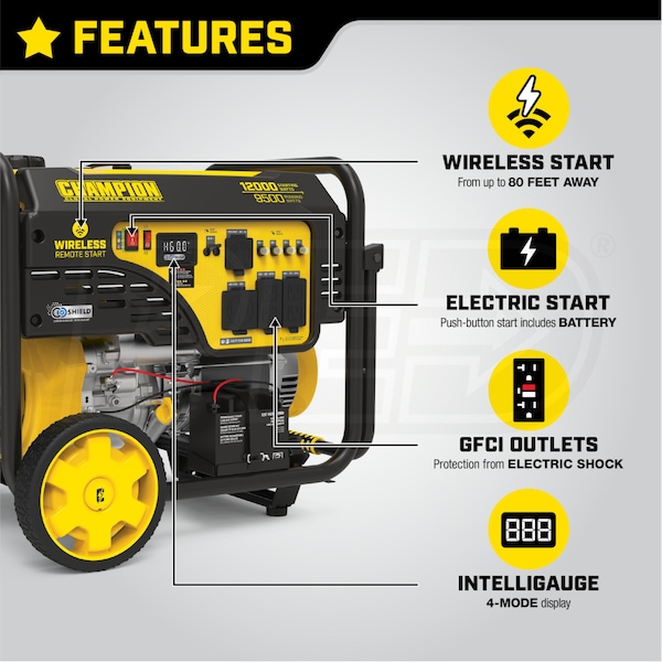 - Champion 9500 Watt Electric / Remote Start Portable Generator