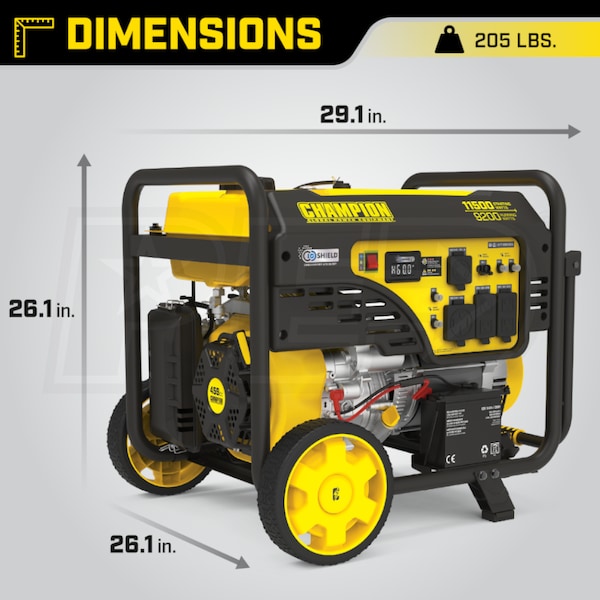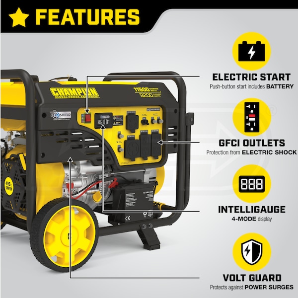 Champion 201110 - 9200 Watt Electric Start Portable Generator w/ & CO Shield® (CARB)