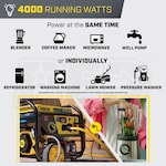 - 5000 W (Starting)/ 4000 W (Rated) when using Gasoline
