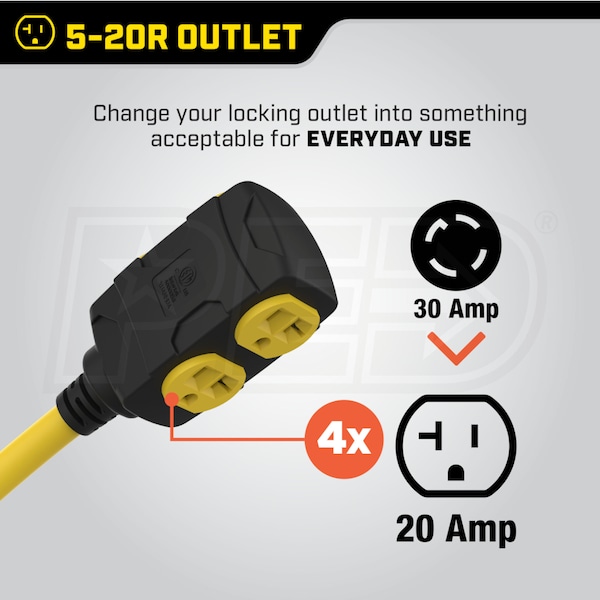 - Split your power from 1 cord into (2) 5-20R Duplex outlets