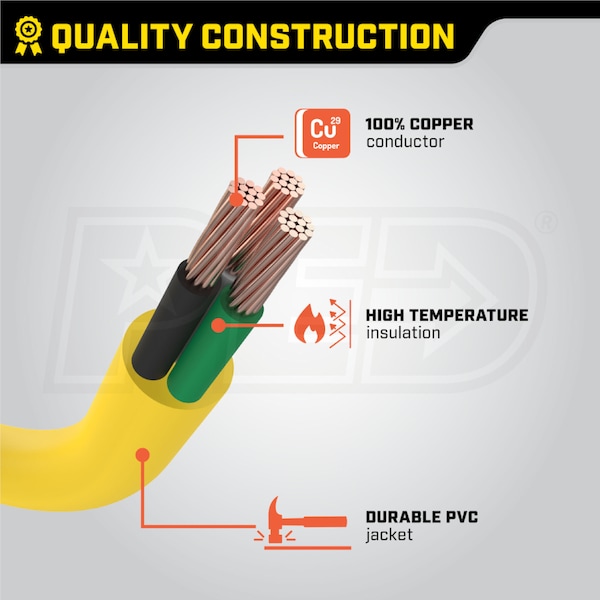 - Minimizes voltage drop (rated up to 7500W @ 125V)