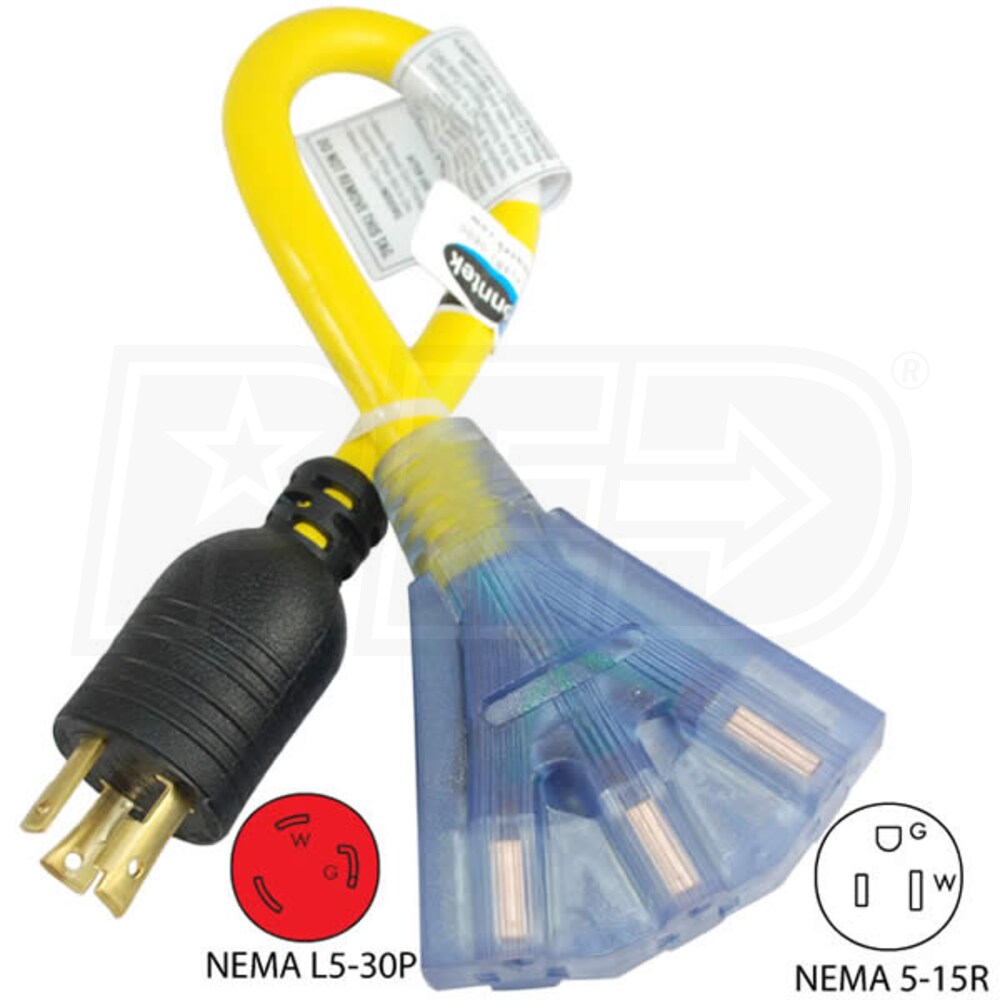 - Turns your 30-Amp outlet into 3 x 15-Amp outlets