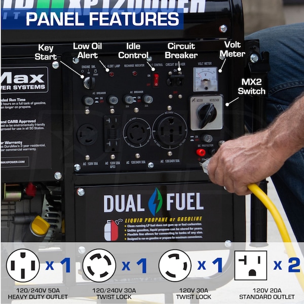 - DuroMax XP12000EH Dual Fuel Portable Emergency Generator
