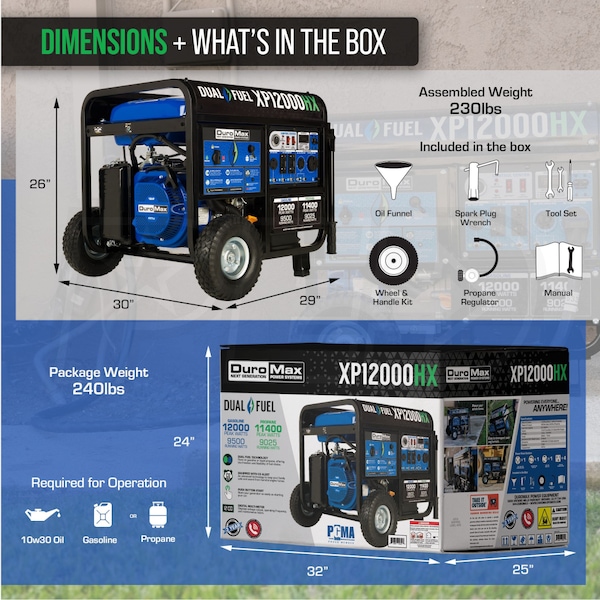 - DuroMax XP12000HX Dual Fuel Portable Emergency Generator