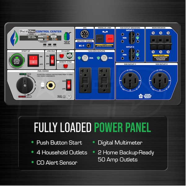 - DuroMax 744cc OHV Engine w/ Automatic Low Oil Shutdown