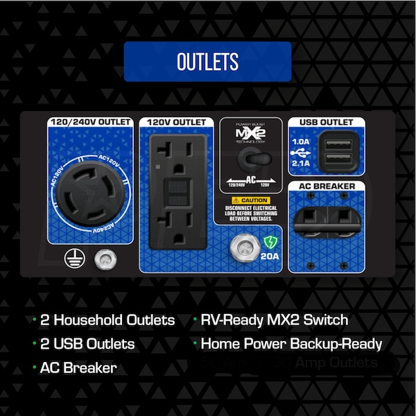 - Provides up to 4,275 running watts & up to 5,225 starting watts on propane