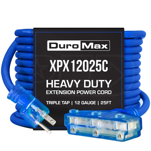 - DuroMax XPX12025C Heavy Duty SJEOOW - 25' Cord w/ (3) Outlets