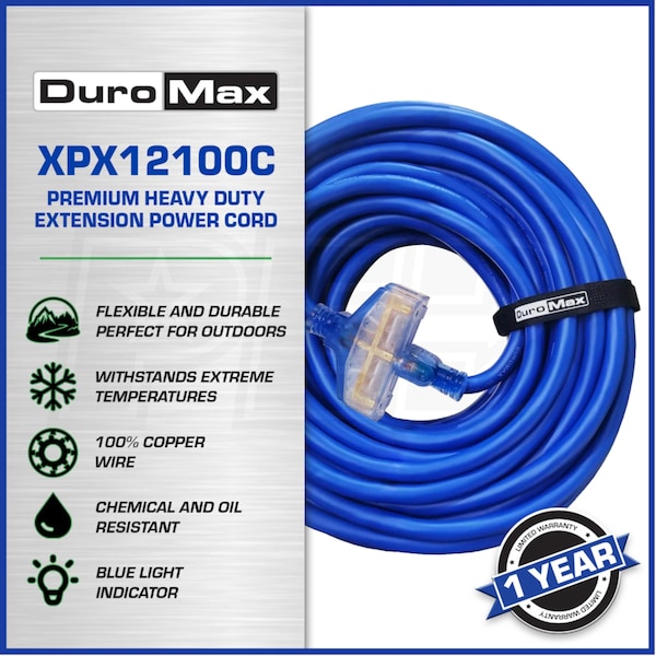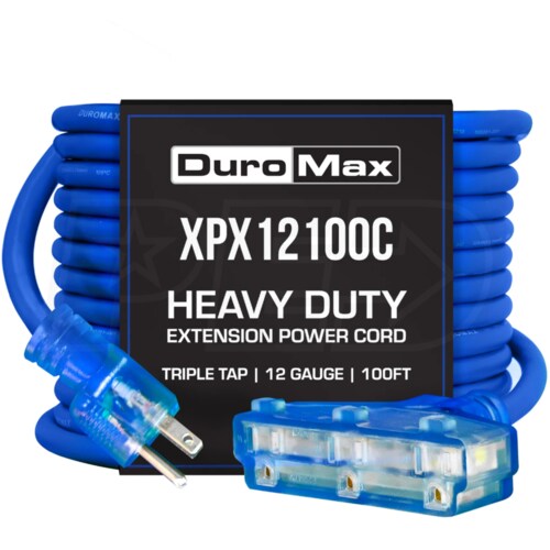 - DuroMax XPX12100C Heavy Duty SJEOOW - 100' Cord w/ (3) Outlets