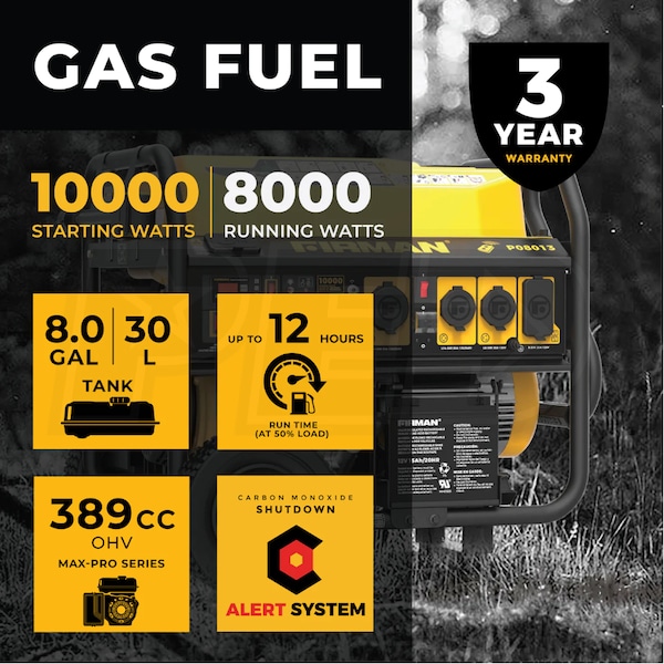 Firman P08003 - Performance Series 8000 Watt Electric Start Portable Generator w/ Wireless Remote, TT-30 Adapter & CO Alert