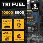 • Versatile, Tri-Fuel Operation (Propane Tank Not Provided)