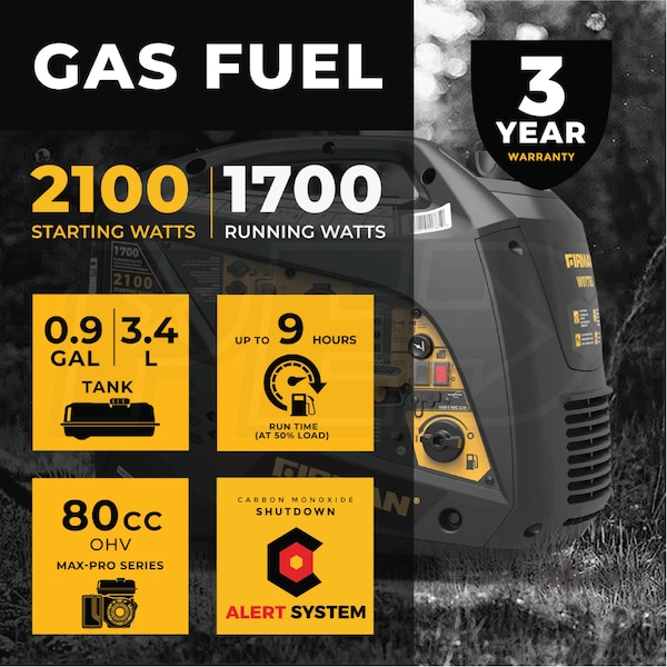 Firman W01784 - Whisper Series 1700 Watt Parallel Ready Inverter Generator w/ CO Alert (CARB)