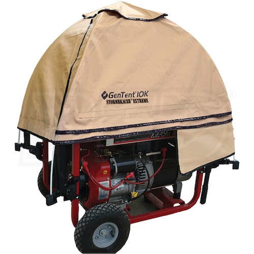 GenTent® 10k Stormbracer® Extreme Rain/Wet Weather Safety Canopy for Portable Generators (Square Tube Frame) (Tan)