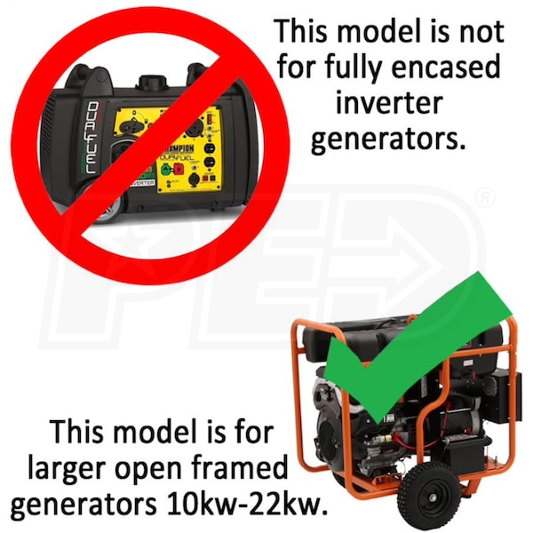 Our UNIVERSAL fit model for open frame generators includes four frame adapters that can be used on square or round tubular frames, as well as for panels or muffler heat shield blocking direct clamp mounts. The frame adapters can also be used for extending your generator perimeter, the XL kit fits larger generators up to 22,000w!