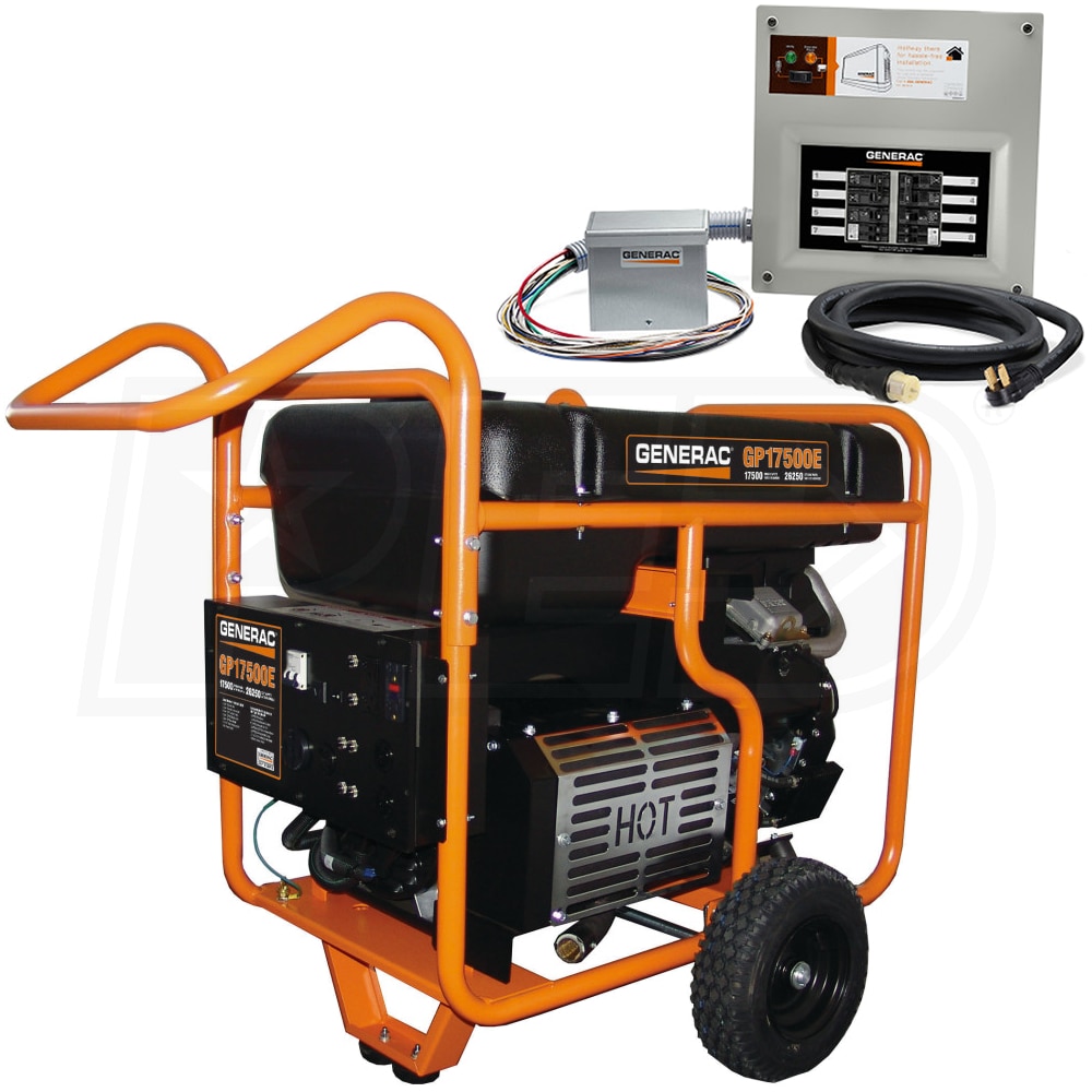 Generac GP17500E - 17,500 Watt Electric Start Portable Generator (49-State) w/ 50-Amp Power Transfer Kit