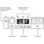 - Charges on AC or Solar power (Solar Panels Not Included)