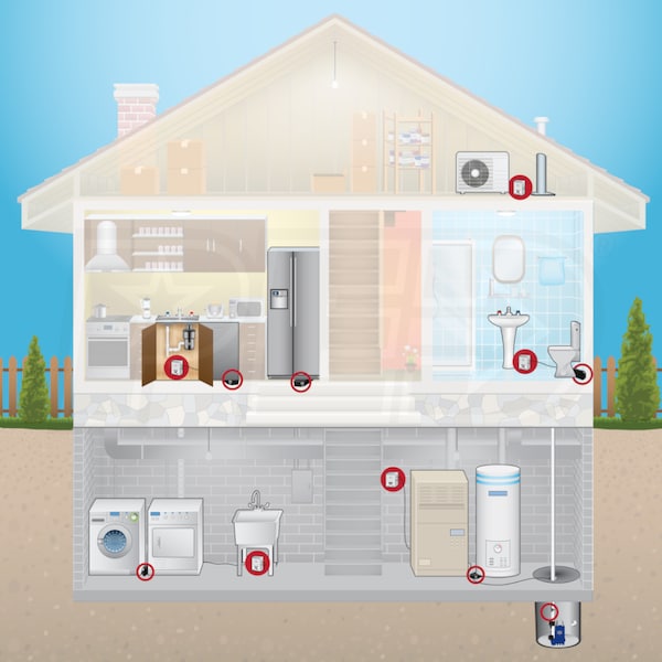 - Detects water only 1/32" deep when the sensor is placed on floor