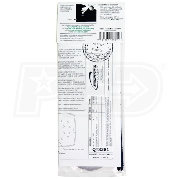 QwikPad® For Generators Concrete Anchor