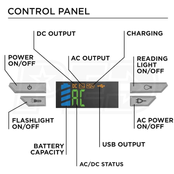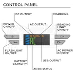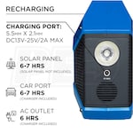 - Charges on AC, 12V or Solar power (Solar Panels Not Included)
