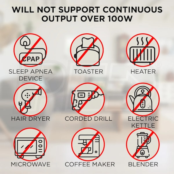 - AC Inverter Output - 100 Watt Continuous / 150 Watt Surge