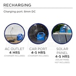 - Charges on AC, 12V or Solar power (Solar Panels Not Included)