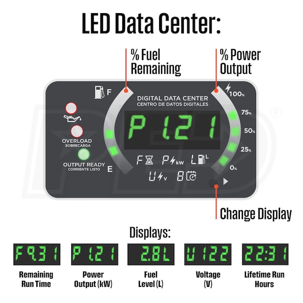 - Shuts the generator down when unsafe levels of CO are present