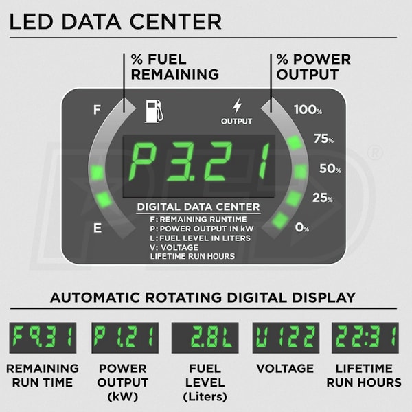 - Runs for up to 15 hours @ 50% Load and 18 hours @ 25% Load